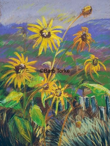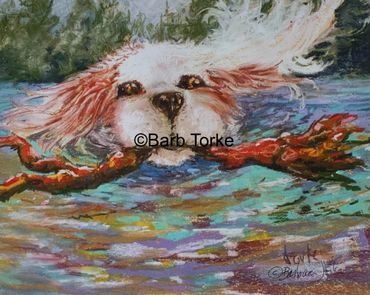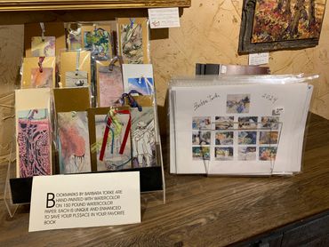 Barb loves to read as well as painting the outdoors. Her prints show a love of dogs and how they are part of our lives. Her subject varies, and new pieces are always being placed at the gallery.